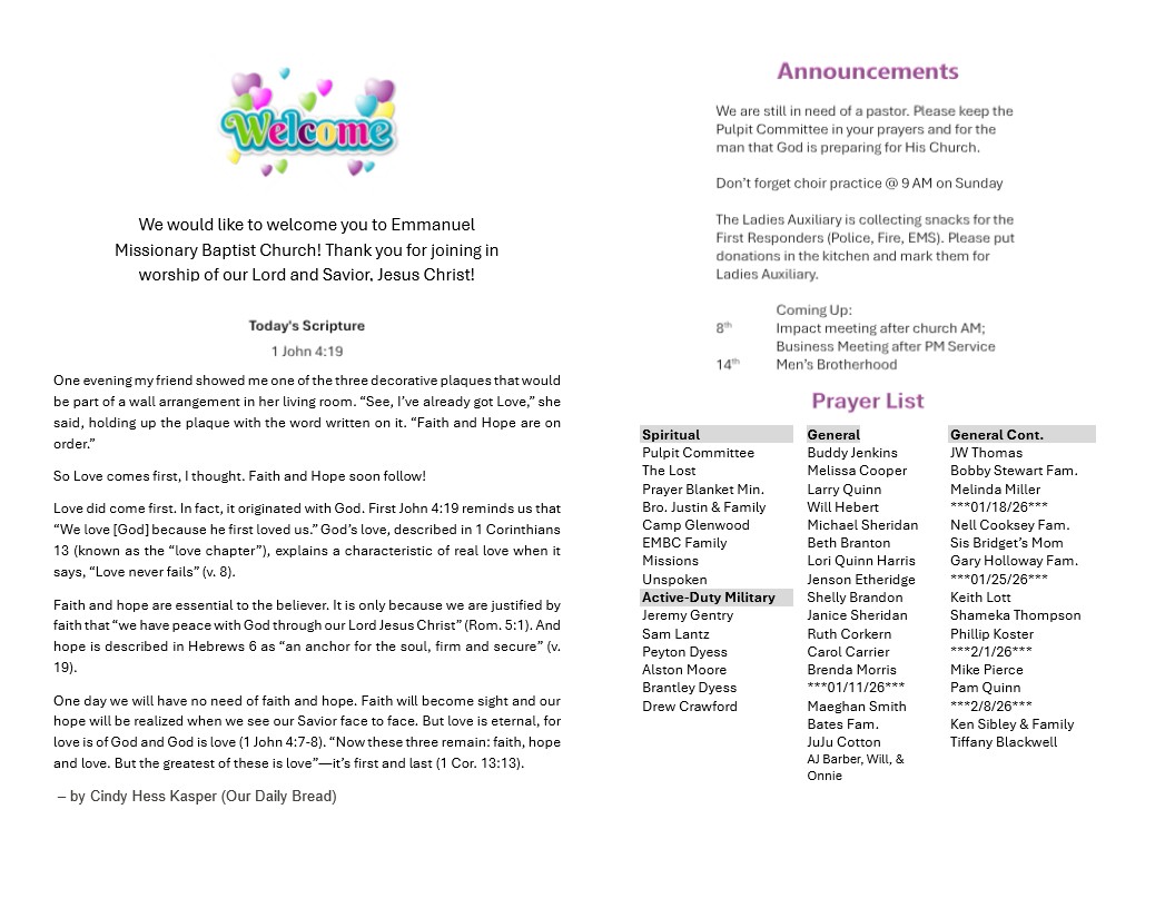 Bulletin & Calendar